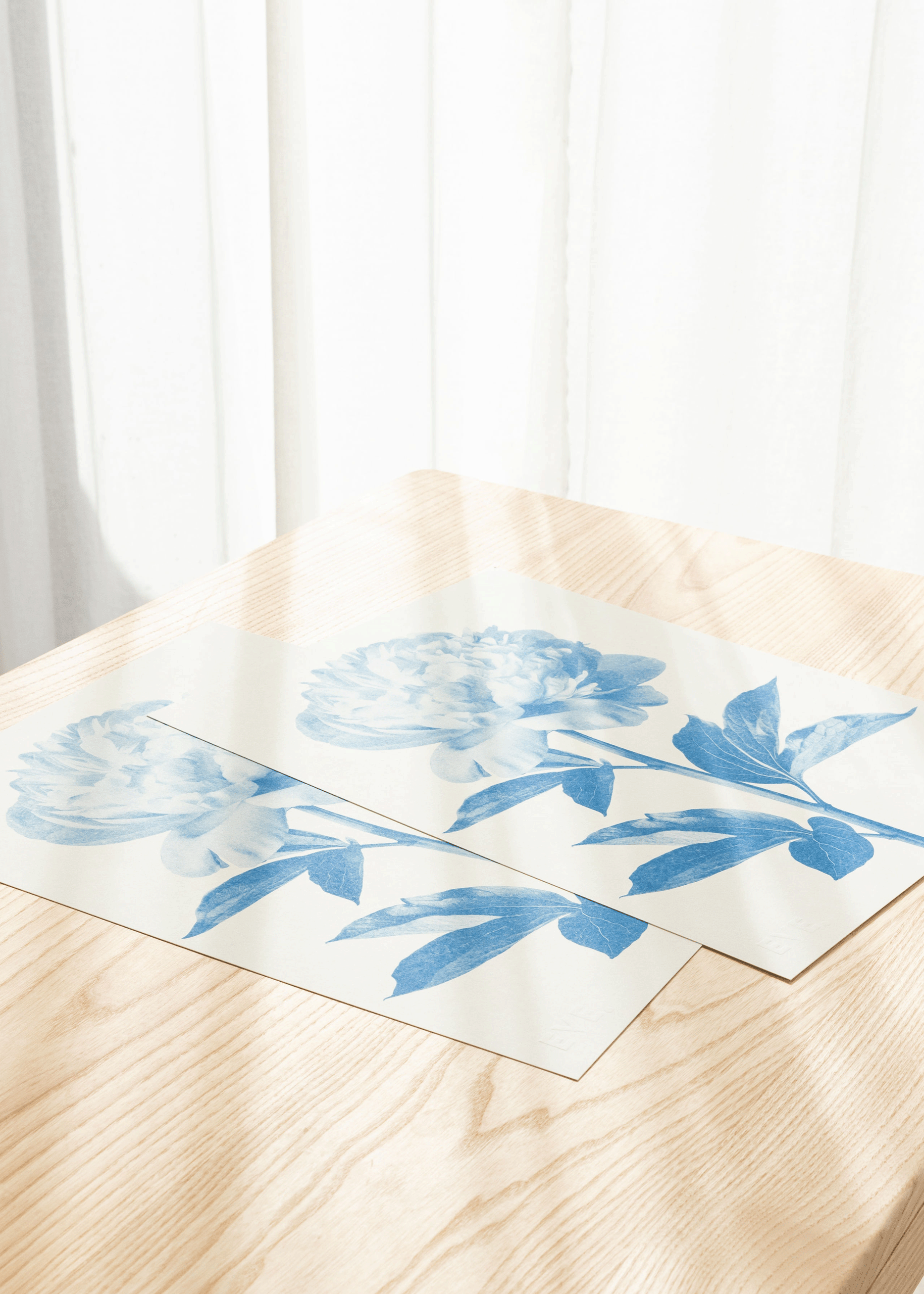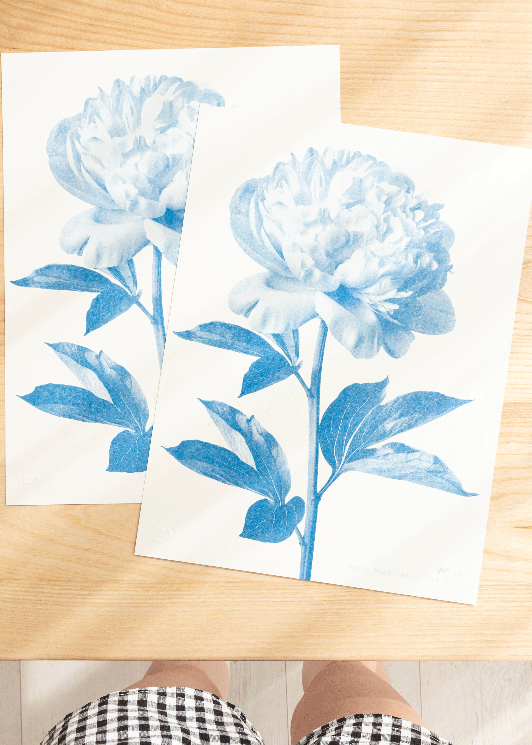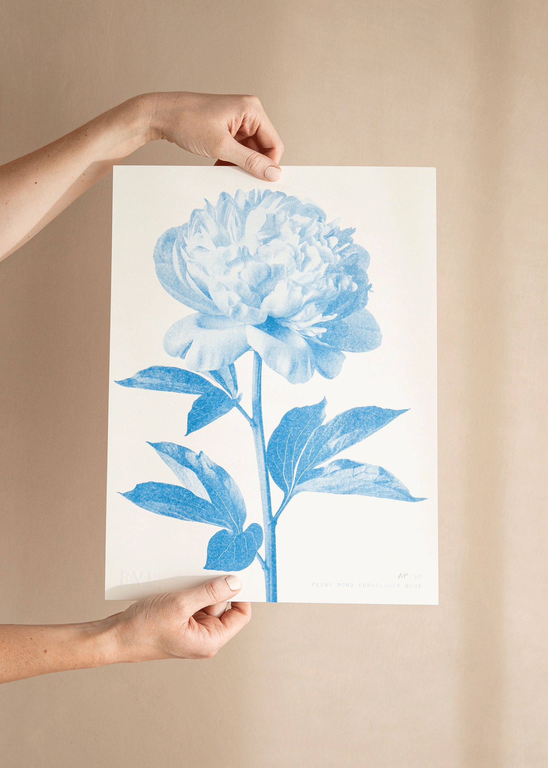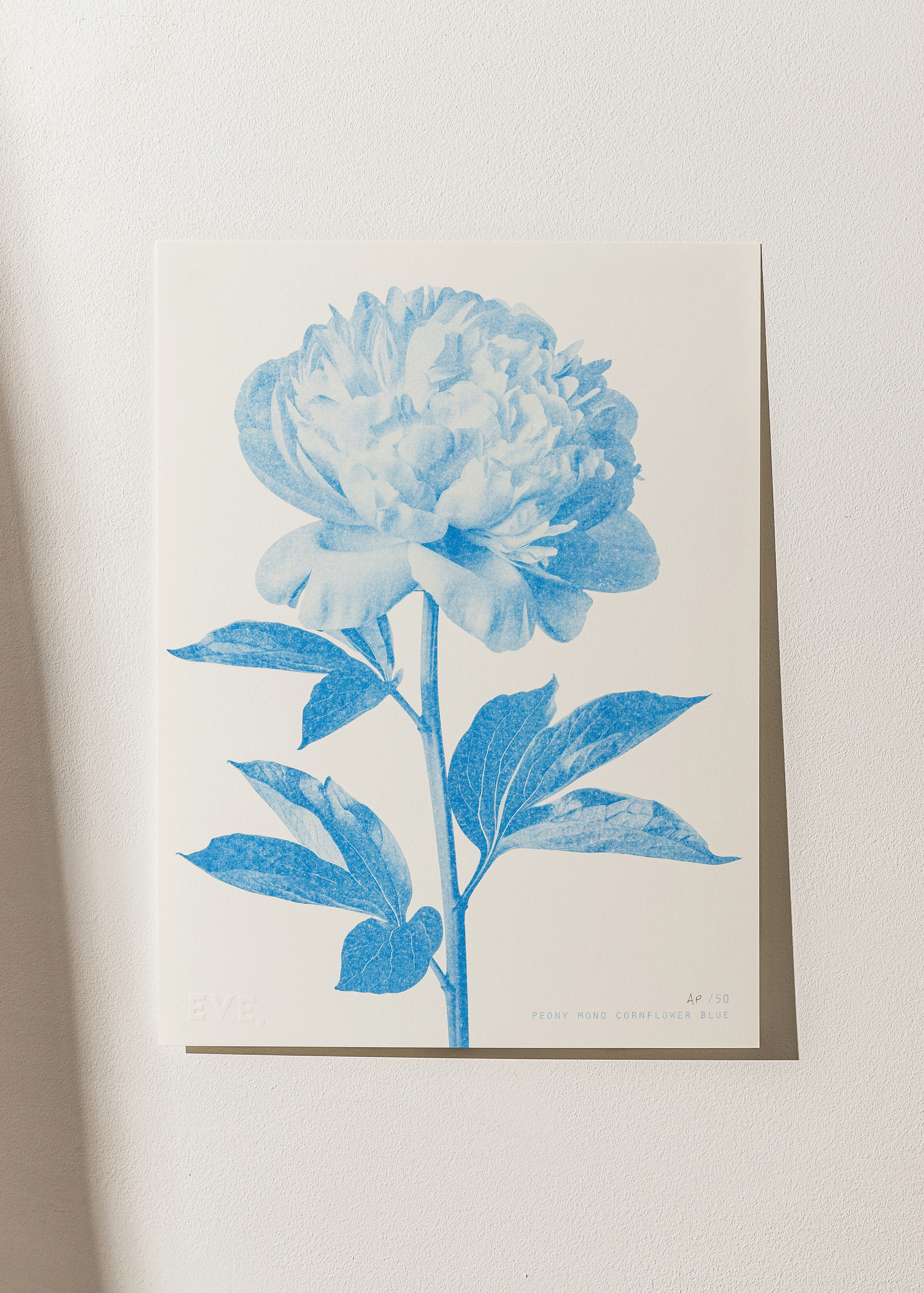 A Riso print with a beautiful Peony stem in cornflower blue ink. I love the simplicity of these botanical prints.