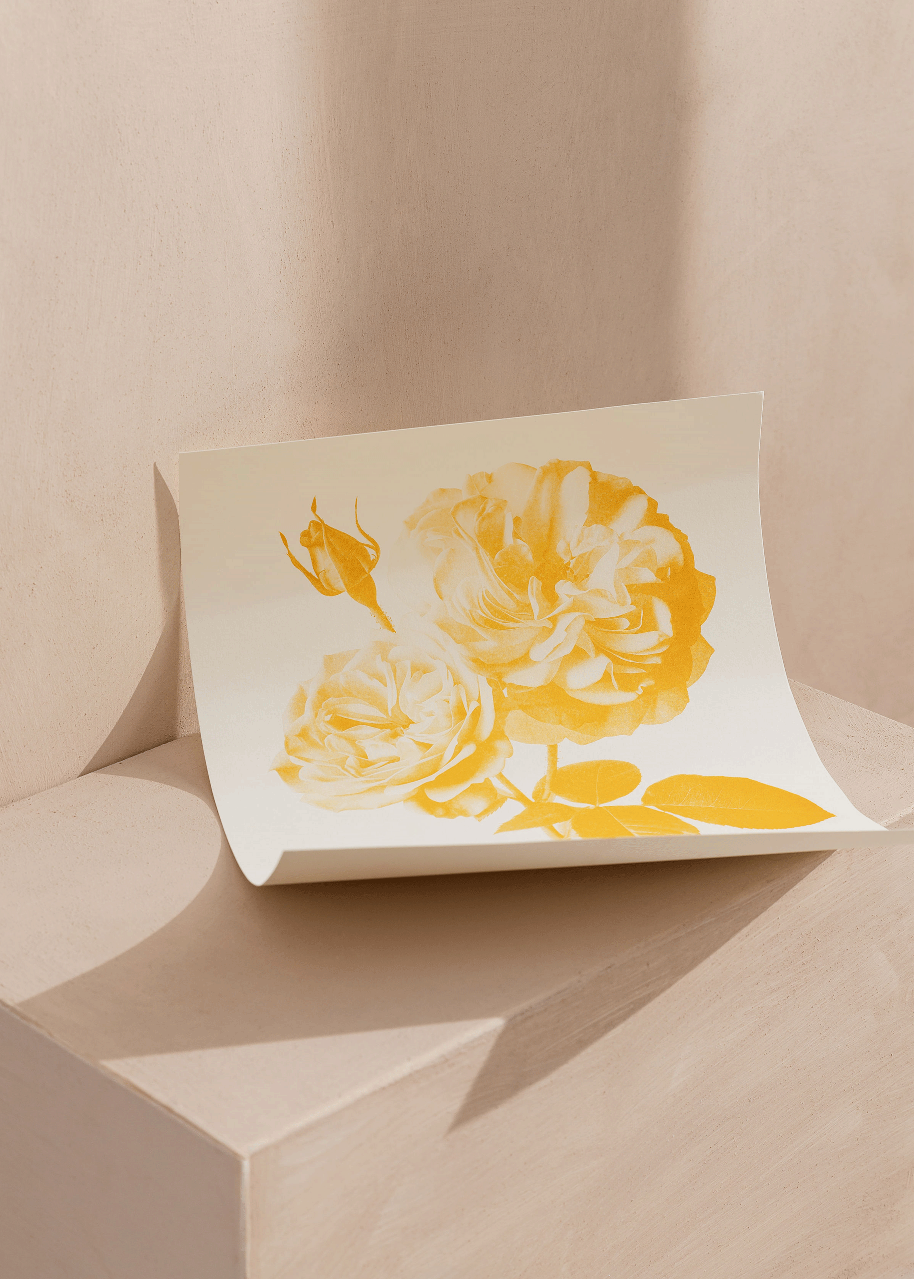 A Riso print with a stunning Rose stem in sunflower yellow ink. I love the simplicity of these botanical prints.